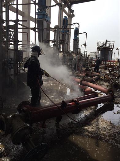 2、高压水清洗:采用50Mpa以上的高压水射流,对管道内表面污垢进行高压水射流剥离清洗。该技术主要用于短距离管道,并且管道直径必须大于50cm以上。该技术具有速度快,成本低等特点。